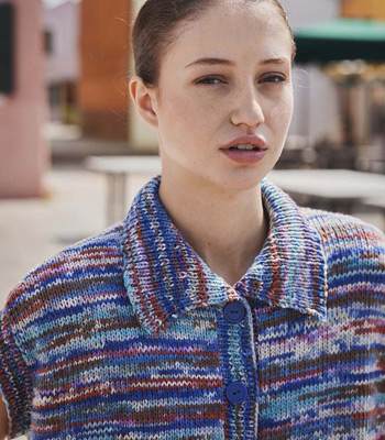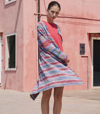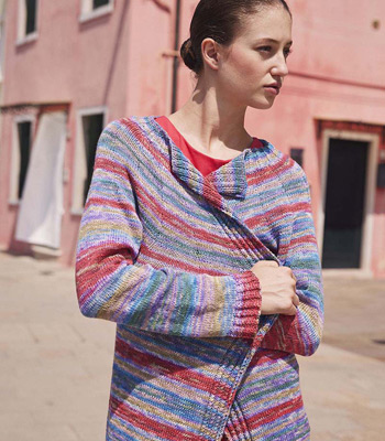 ILLUSION, eine Mischung aus Baumwolle und Bambusviskose, zeichnet sich durch seine einzigartige Farbgebung aus. Jeder Faden wird vor dem Verzwirnen separat mit demselben Farbverlauf bedruckt,